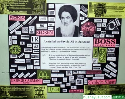 "برای مسلمانان جایز نیست خرید محصولات کشورهایی که با اسلام و مسلمانان در حال جنگ هستند، به عنوان مثال اسرائیل."